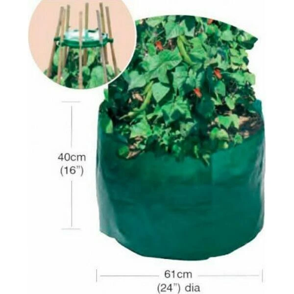 Per zak kunnen ongeveer 8 boon- of erwtplanten geteeld worden. De kweekzak is een stevige duurzame zak uit sterk gewoven polyetheen. De zak is ook beschermd tegen de zon (UV-bestendig) en kan elk jaar opnieuw gebruikt worden.